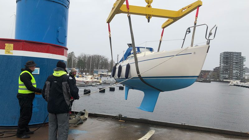Båtlyftkranen har en lyftkapacitet på 10 ton. Det är kranföraren som, med hänvisning till säkerhetsskäl, bestämmer om en båt kan lyftas på ett säkert sätt. Av säkerhetsskäl är det inte tillåtet att ta upp båtar med masten på.