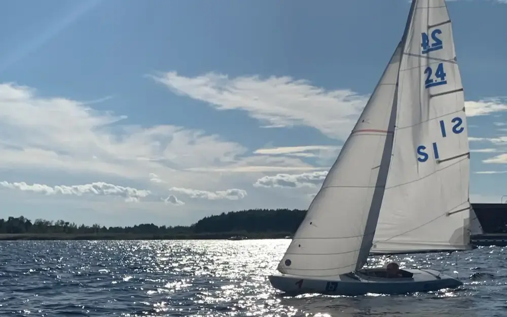 En större båt där flera personer kan segla tillsammans med en instruktör.